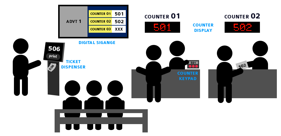 The customer then has the convenience of movement while maintaining their position in the queue as he receives a ticket that displays a number.